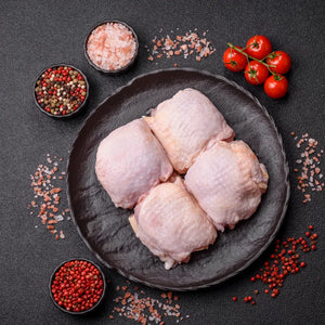 Premium Hand-Cut Halal Chicken Skin-On Leg Meat, flavorful and juicy dark meat with skin for added richness. Perfect for grilling, curries, roasting, and braised dishes.
